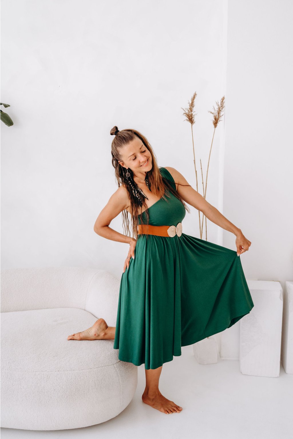 Asymetrické šaty SMARAGDOVÉ bambus + bavlna