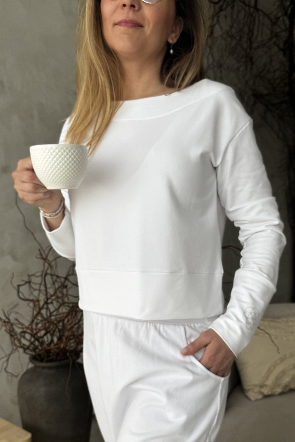 Crop mikinka s dluhým rukávem de-luxe BÍLÁ