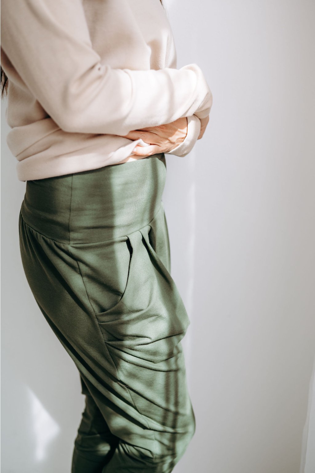Vysoký elastický pas (bez gumy, škrtících zipů a podobných věcí),