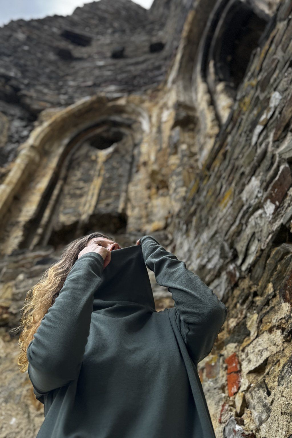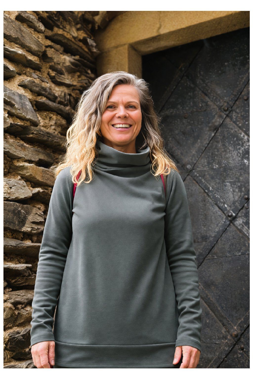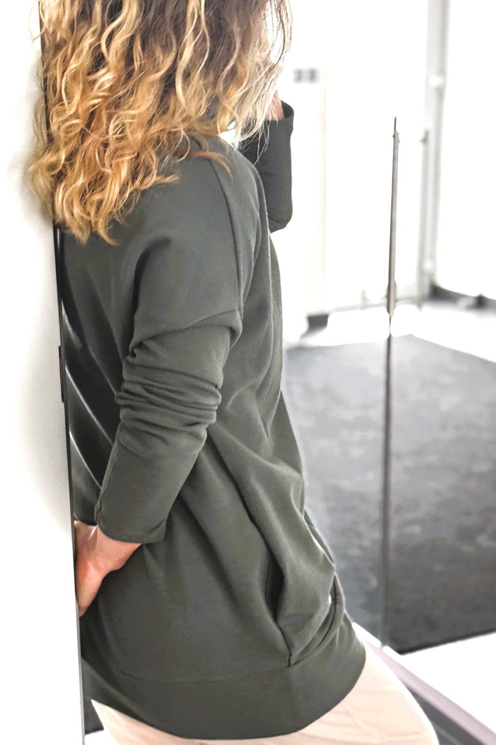 Superdlouhé elastické rukávy a stoják, který u krku drží tvar.